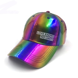 Gorras deportivas de béisbol personalizadas luz láser reflectante color arcoíris cuero PU moda Unisex de 6 paneles